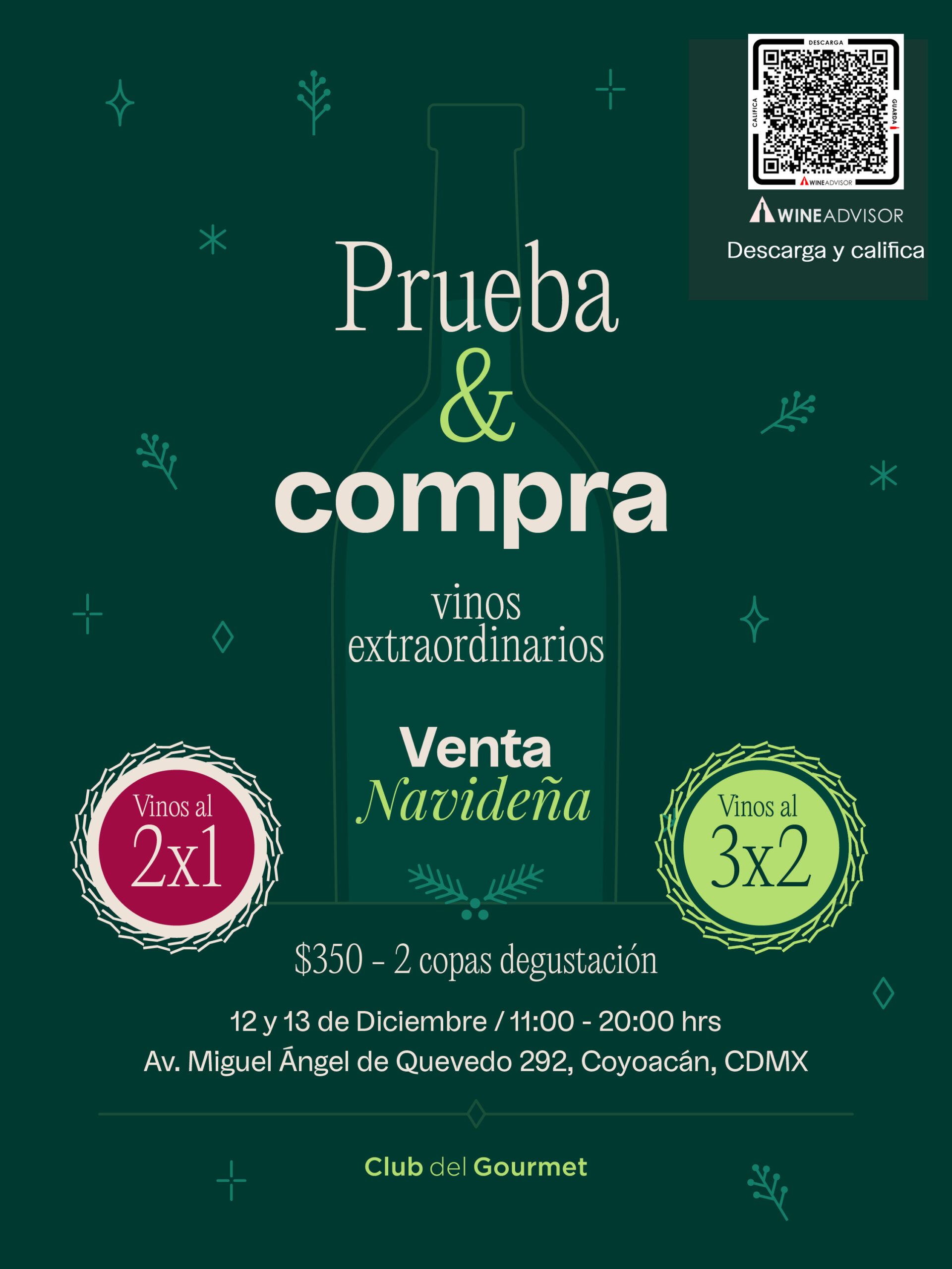 En la tradicional Venta Navideña del Club del Gourmet puedes degustar los mejores vinos durante los días del evento, además de aprovechar precios especiales y grandes descuentos.