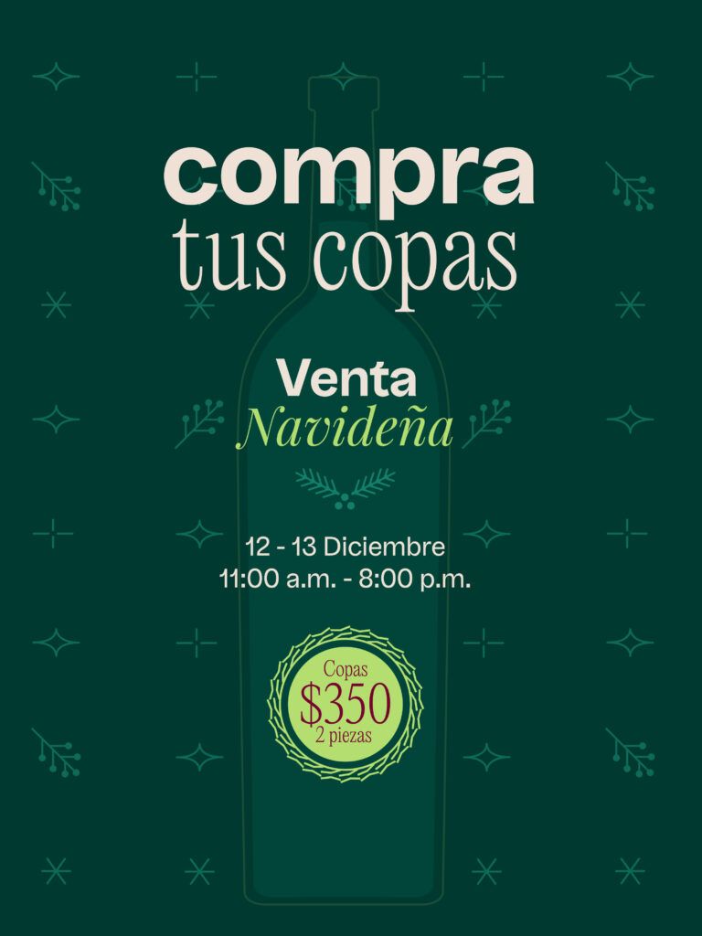 - Ven a nuestra Venta Navideña en Miguel Ángel de Quevedo 292, en Coyoacán CDMX, el 12 y 13 de diciembre y recibe tus copas a la entrada.