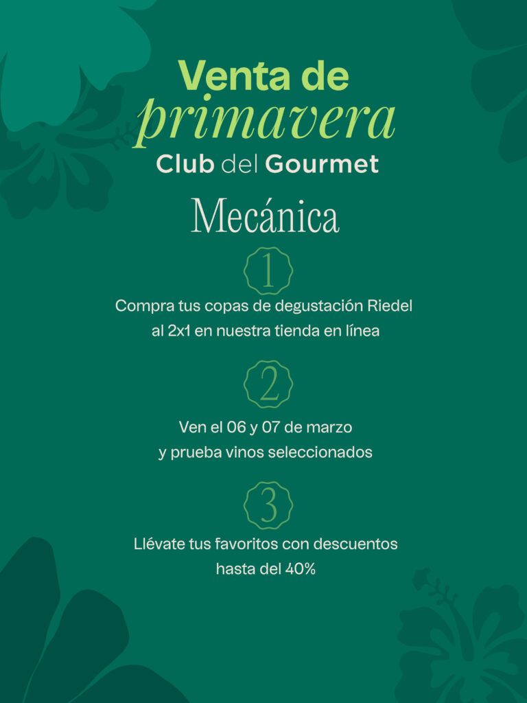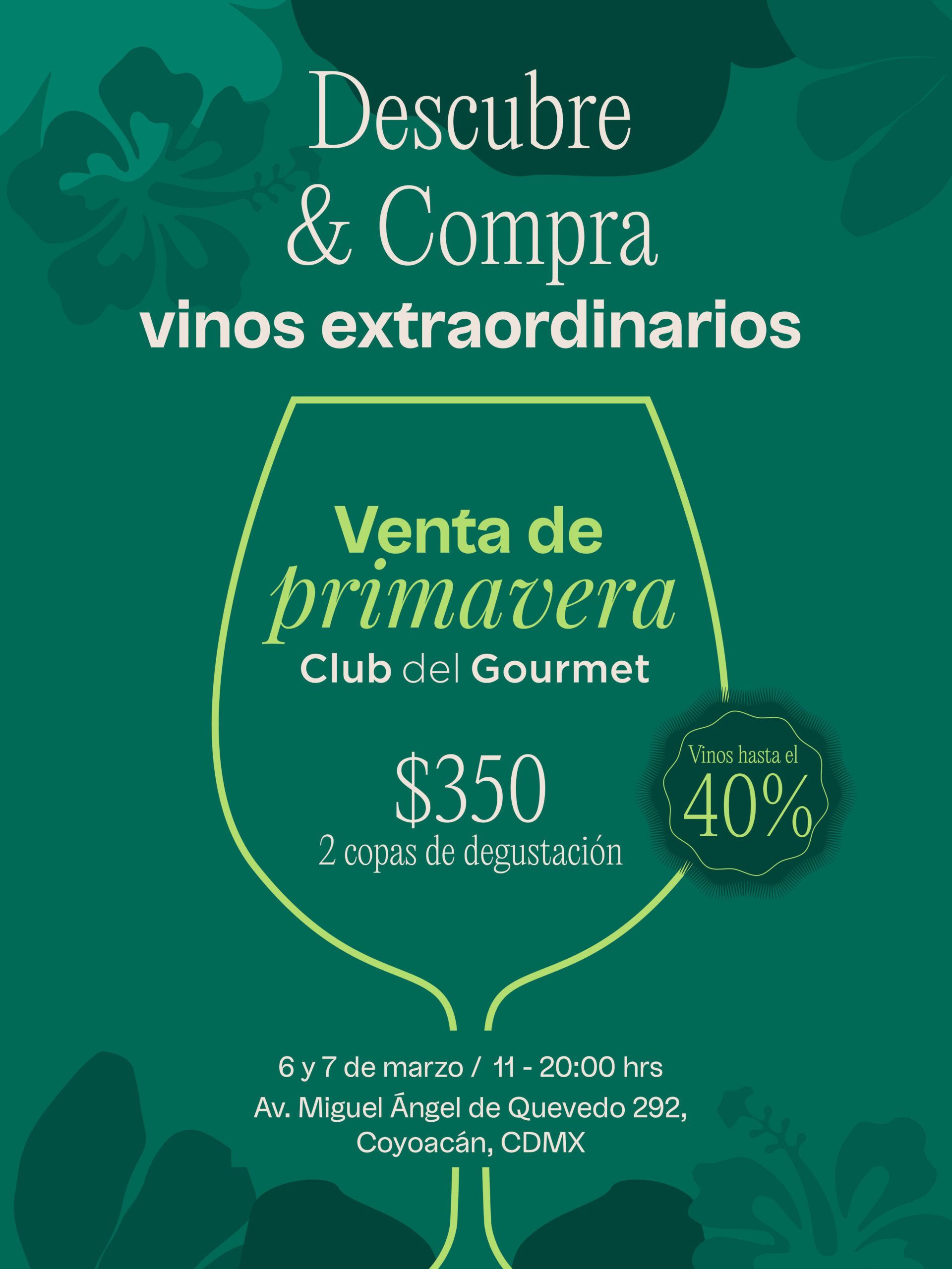 En la Venta de Primavera del Club del Gourmet puedes degustar los mejores vinos durante los días del evento, además de aprovechar precios especiales y grandes descuentos.